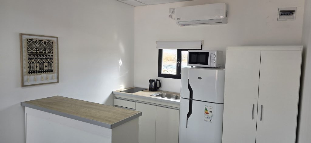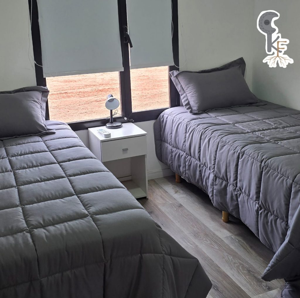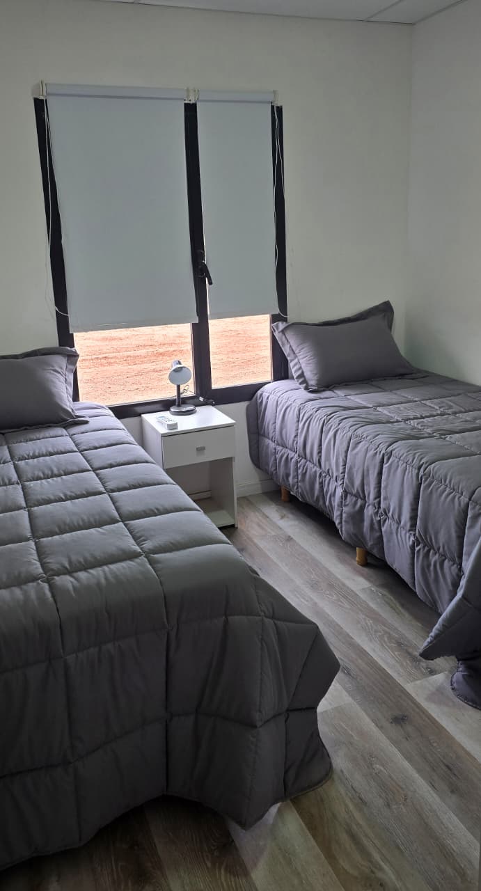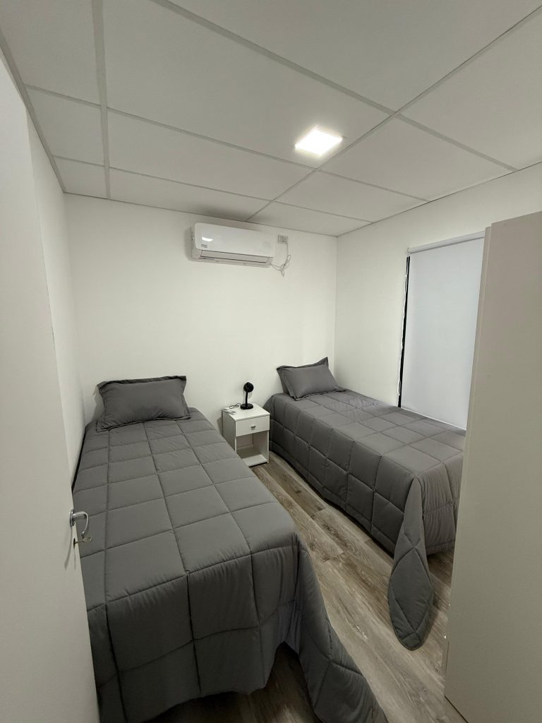 Cada vivienda aloja hasta 8 personas. Disponen de 4 habitaciones privadas, cada una equipada con dos camas individuales, garantizando privacidad y comodidad en cada estancia.